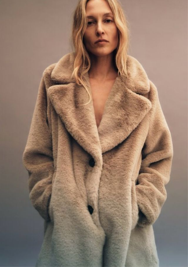 Abrigo pelo Zara beige/marrón