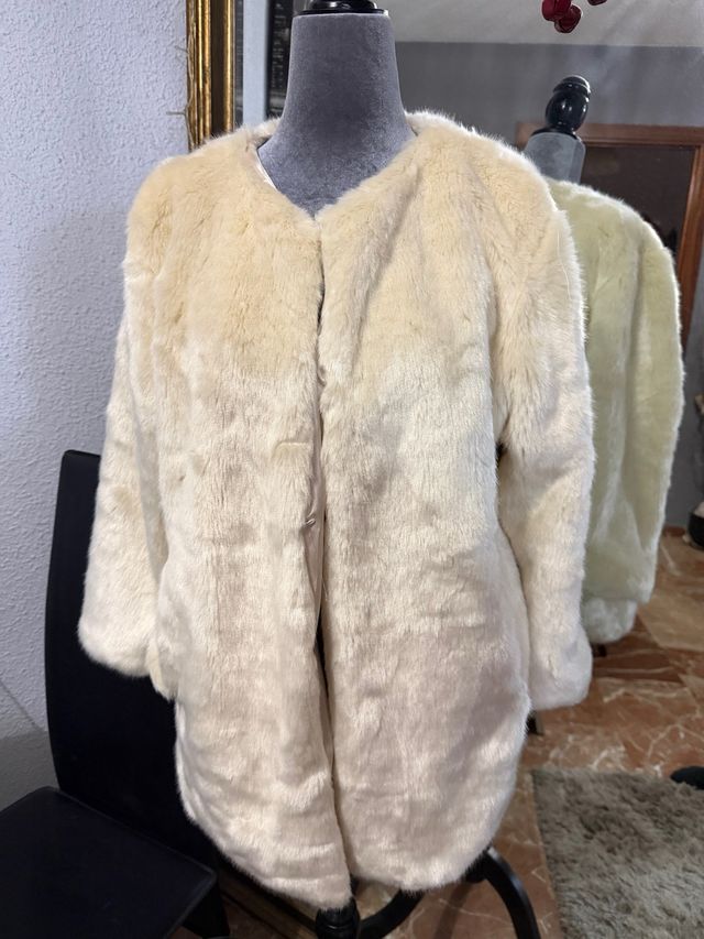 Abrigo piel sintética beige/blanco talla única