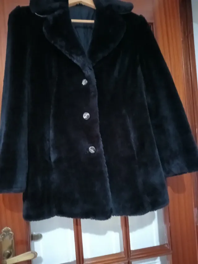 Abrigo Piel Sintética Mujer Negro. Vintage.