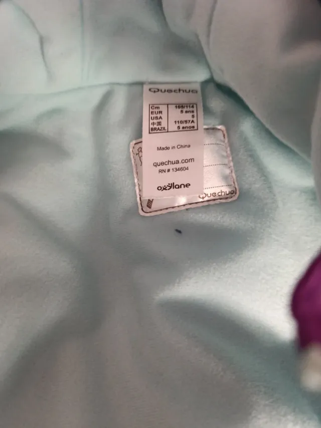 Abrigo de la marca Quechua para niña. - Talla 5 años (105/114 cm). - Color: Azul claro.por dentro y morado por fuera