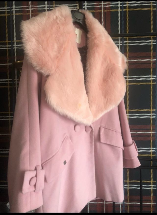 Abrigo rosa con cuello de pelo desmontable