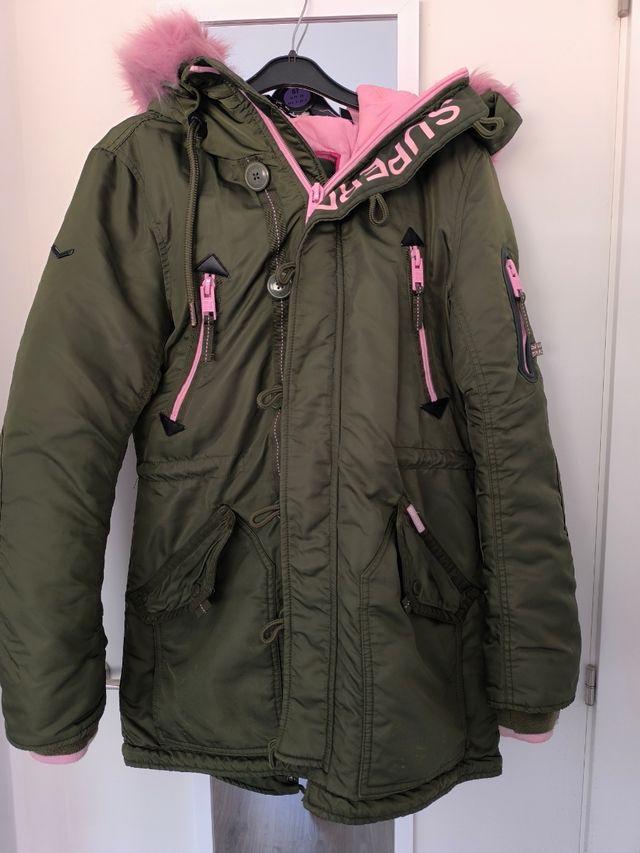 Buen estado · S / 36 / 8 · Superdry · Verde oliva y Rosa