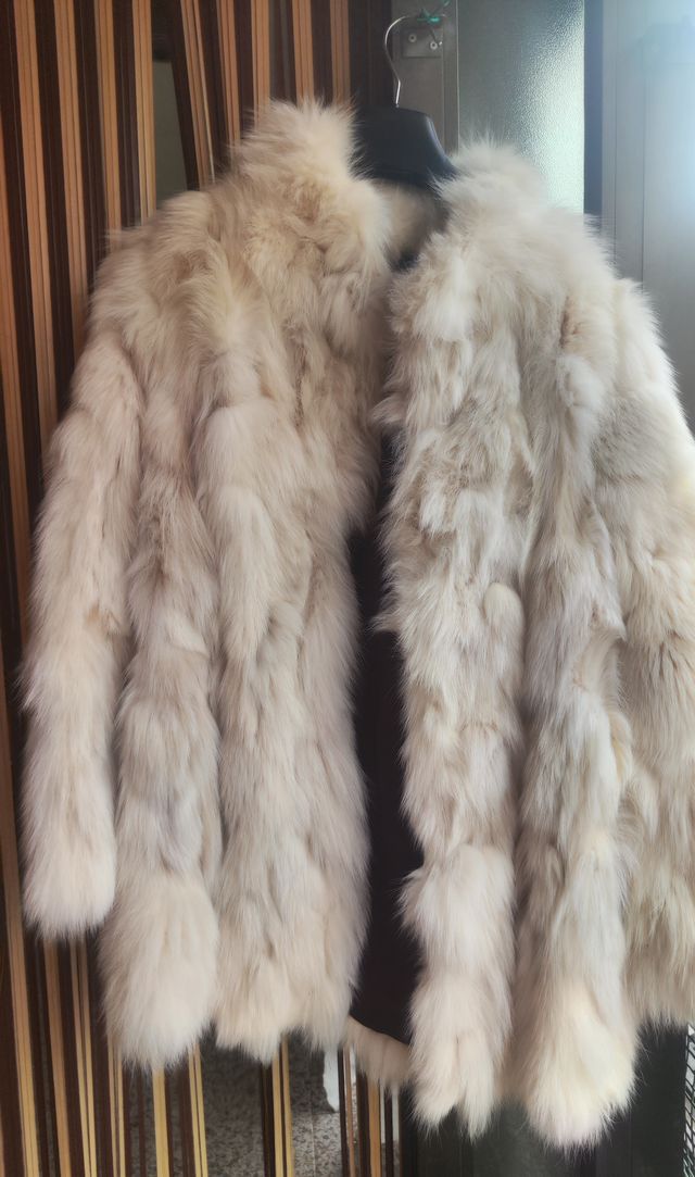 Abrigo vintage pelo zorro beige/blanco