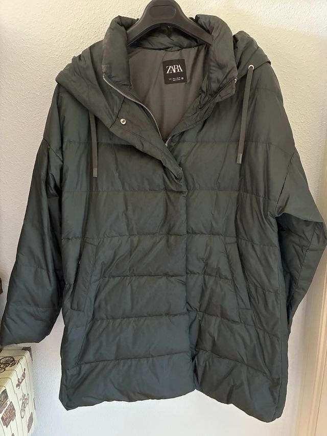 Abrigo Zara Verde Oscuro Plumas