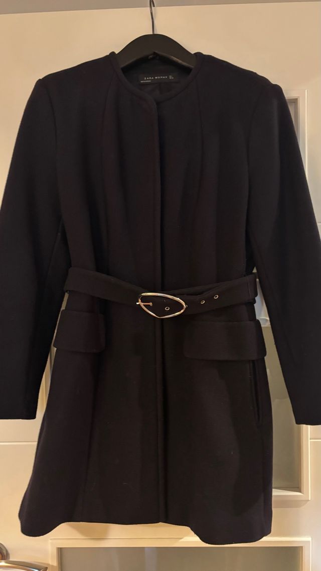 Abrigo Zara Woman elegante negro con cinturón