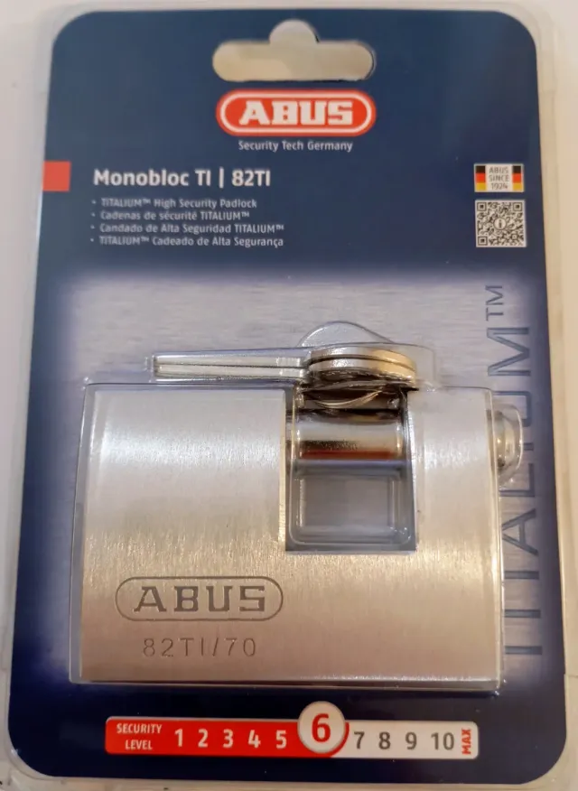 Detalles del productoCandado rectangular de alta seguridad Titalium de la marca ABUS. Ideal para furgonetas, contenedores, persianas, cadenas, verjas etc...