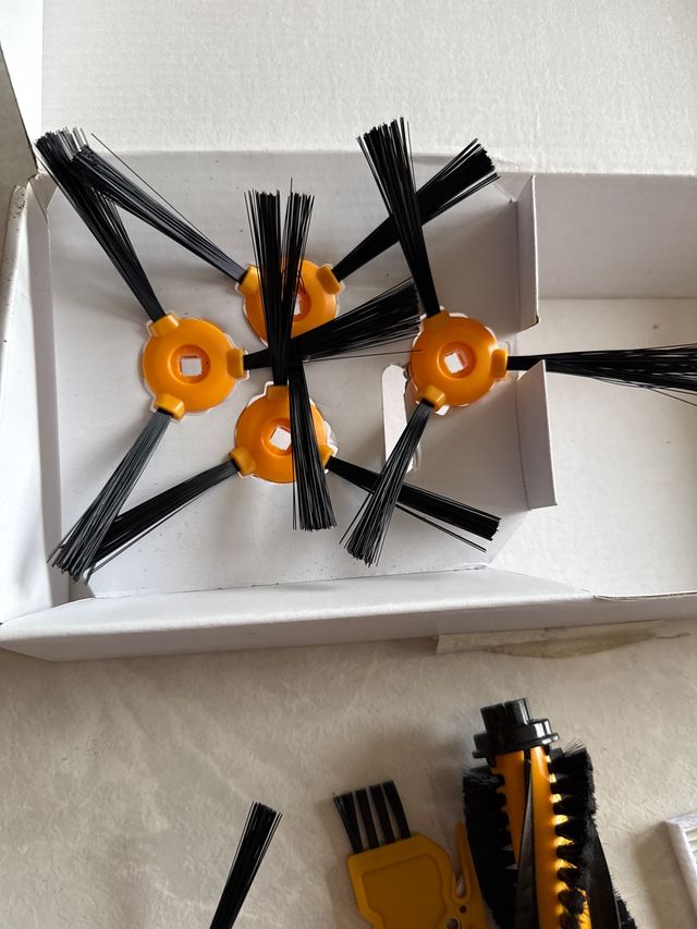 - Incluye 5 cepillos laterales, 1 cepillo principal, 2 filtros HEPA, 1 filtro de esponja, un cepillito para limpiar el robot y el filtro azul.