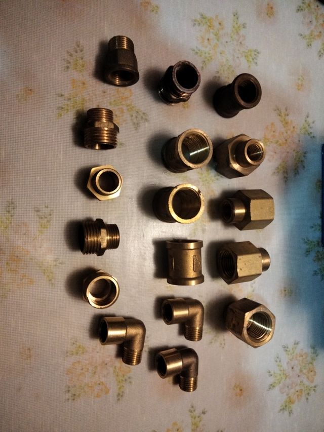 Detalles del productovarios accesorios de latón vendo por separado, el precio indicado es de todos los accesorios: 3 manguitos de 1/2" 3 codos de 1/4" M-H