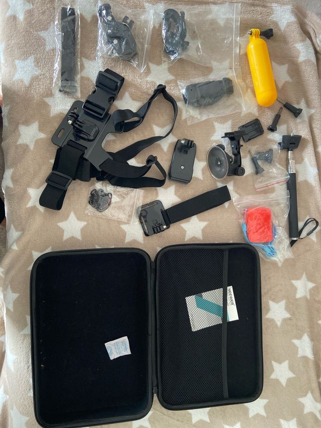 Detalles del productoKit de accesorios para GoPro, prácticamente nuevo. Incluye una gran variedad de soportes y monturas para usar tu cámara en cualquier situación.