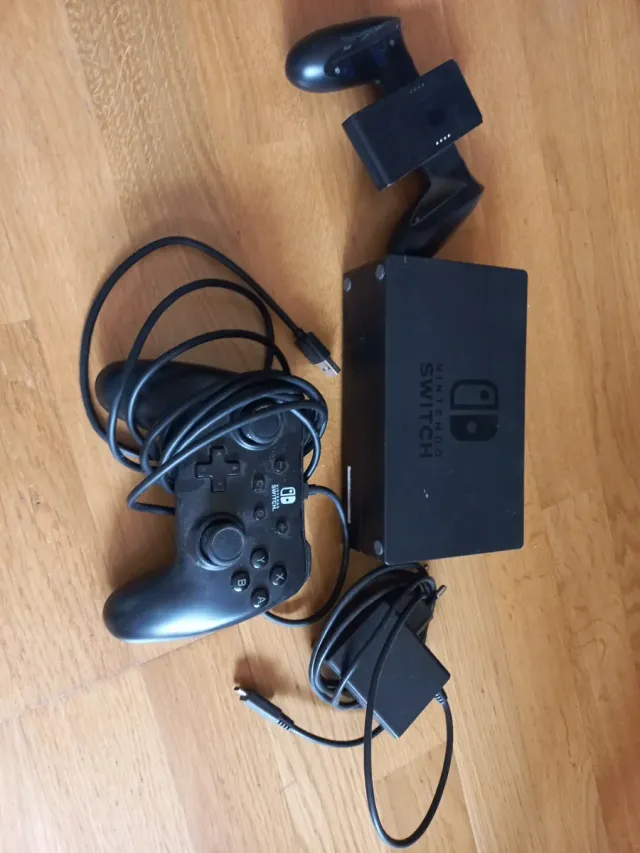 Conjunto de accesorios para Nintendo Switch. - Mando Pro Controller. - Base de carga para Joy-Con. - Adaptador de corriente.