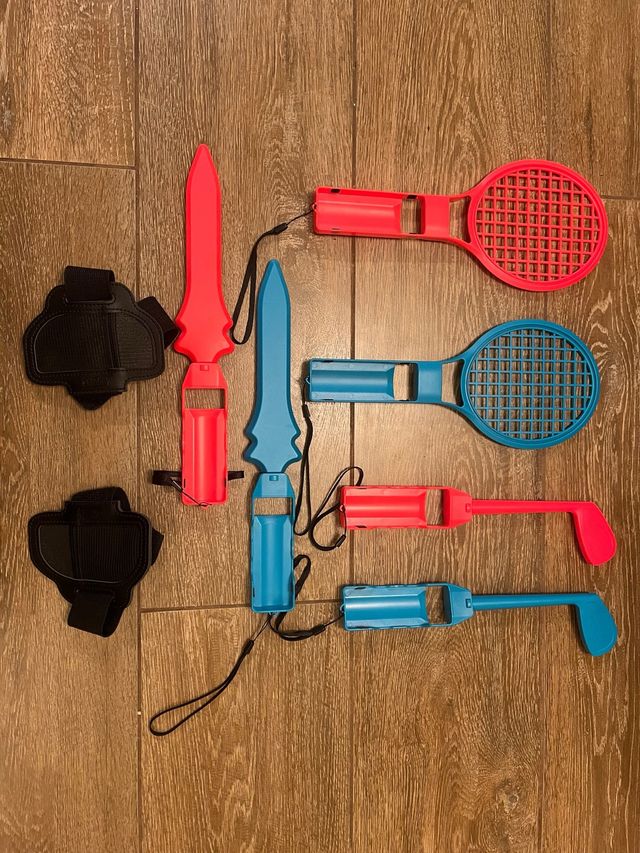 Detalles del productoConjunto de accesorios para juegos deportivos en Nintendo Switch.