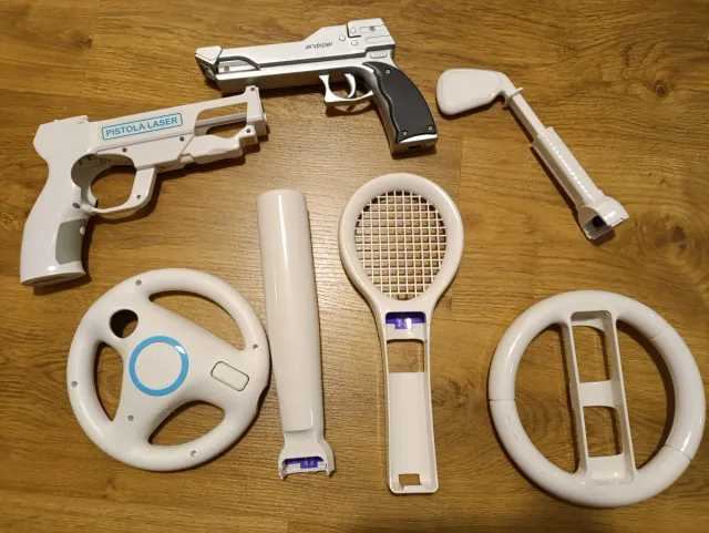 Accesorios Wii: Pistolas, Raqueta, Volante.