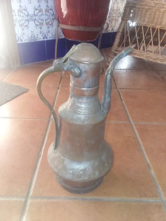 Aceitera vintage de metal con un diseño clásico. Medidas alto 34cm y diámetro de la base 14cm - Material: Metal - Color: Bronce/Plateado - Diseño ornamentado