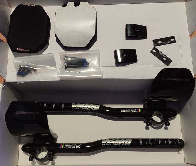 Detalles del productoAcople extensión para manillar de triatleta marca Vision Trimax Plus. El de las fotos. Está en su caja sin estrenar. Es de aluminio y carbono. Para diámetro de manillar de 25,4mm. Longitud 290mm. Peso por acople 278g + 15g de la almohadilla.