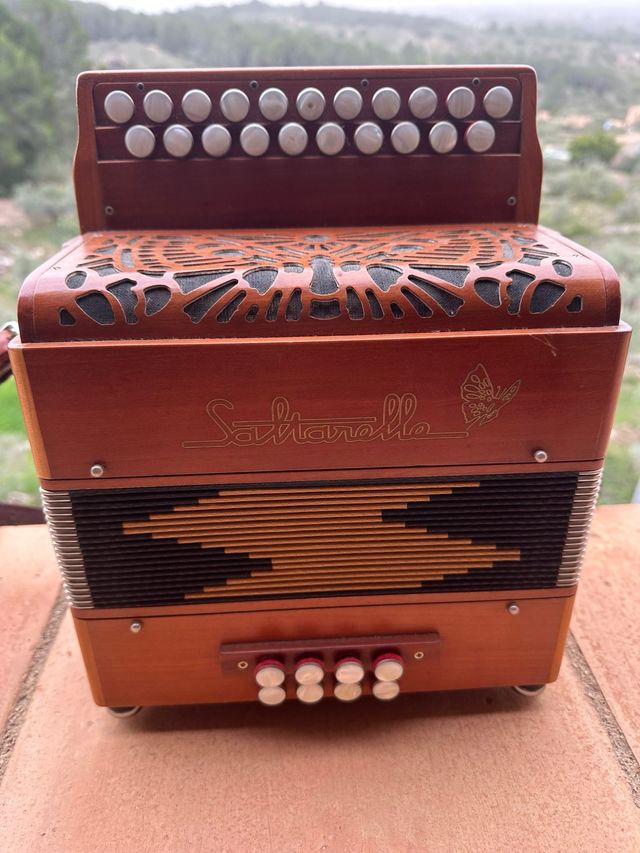 Se vende un magnífico acordeón diatónico Saltarelle modelo L’Elfique en perfecto estado, ideal para músicos exigentes que buscan un instrumento compacto, potente y de calidad.