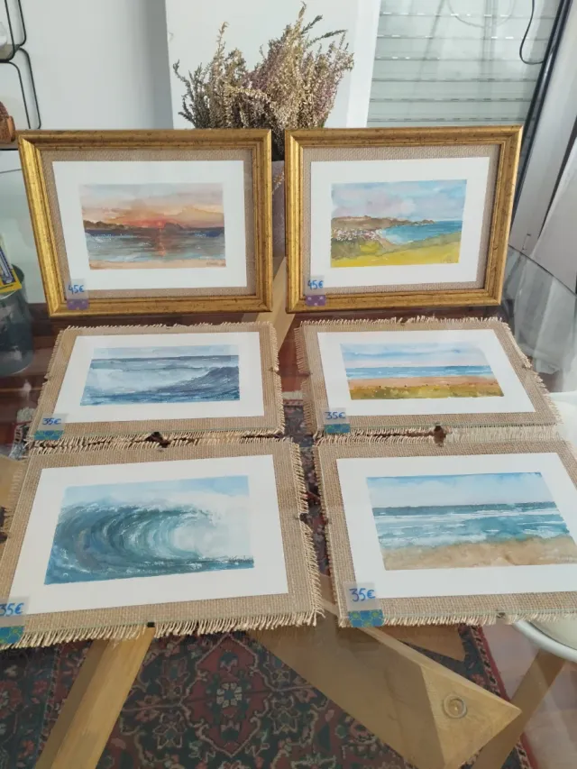 Detalles del productoConjunto de acuarelas originales de Zarautz. Cada obra está enmarcada y lista para colgar.