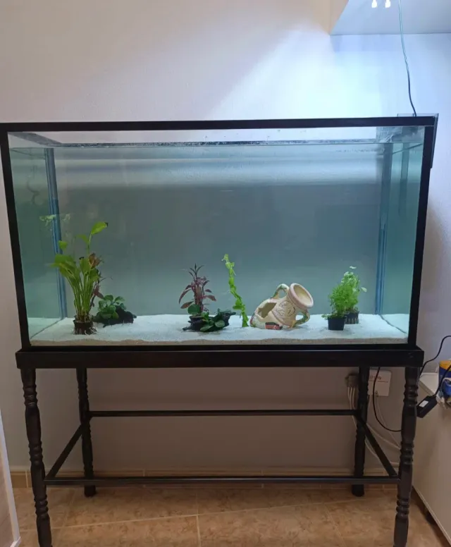 Acuario de 200 litros con su soporte y depuradora de cascada. - Capacidad: 200L - Incluye soporte - Depuradora tipo cascada