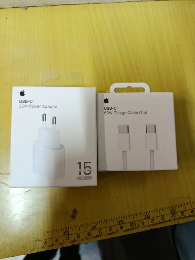Pack de cargador y cable USB-C de Apple. - Adaptador de corriente USB-C de 35W. - Cable de carga USB-C de 60W (1m).