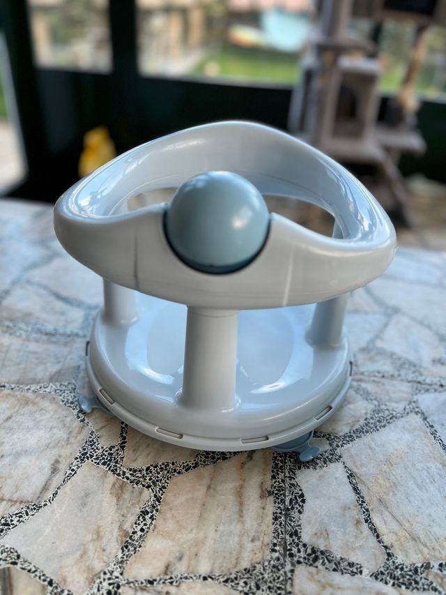 Adaptador para bañera de bebé, diseñado para ofrecer comodidad y seguridad durante el baño. - Color blanco y azul. - Base antideslizante.