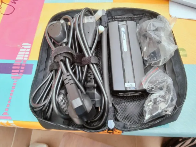 Adaptador de corriente universal Targus AC70U. - Modelo 800-0085-001A - Incluye cables y accesorios. - Diseño compacto para fácil transporte.
