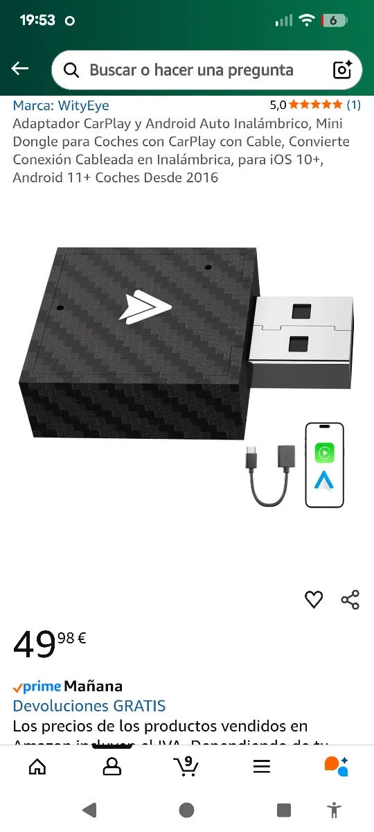Detalles del productoConvierte tu conexión cableada de CarPlay y Android Auto en inalámbrica con este mini dongle.