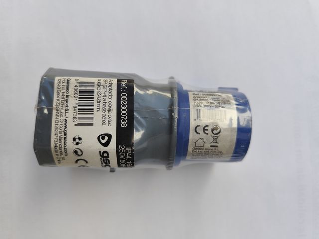 Adaptador clavija cetac de 250V y 50Hz. Ideal para conectar enchufes. - Es un adaptador de clavija aérea. - Referencia: 002300738 - Protección IP44 - 16A.