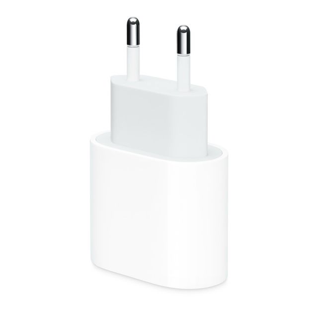 Detalles del productoAdaptador de corriente blanco de la marca Apple.