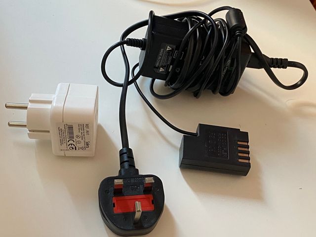 Detalles del productoVendo adaptador de corriente compatible con cámaras Panasonic que usan bateria DMW-DCC12, como por ejemplo la GH3, GH4, GH5, GH5S, GH5 II, GH6, GH7, etc. Es especialmente util cuando hay que grabar o hacer fotos en interior durante mucho tiempo para no estar pendiente de la carga.