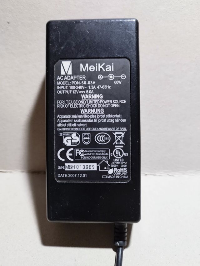 Cargador de 60W de corriente alterna para portátiles. Salida: 12V - 5A, 60W, Conector: 5,5x2,5mm Se incluye cable de alimentación.
