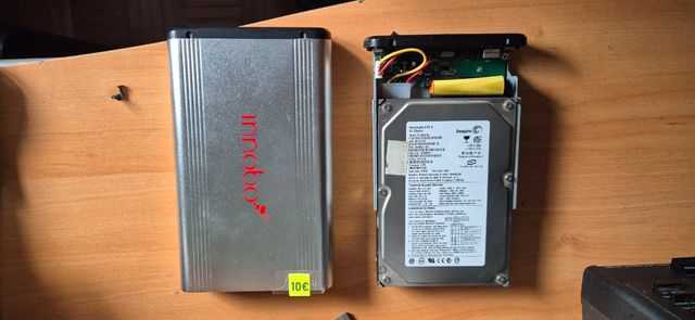 Adaptador para disco duro externo de la marca Innobox. - Carcasa de aluminio. - Incluye disco duro Seagate Barracuda ATA V de 60 GB.