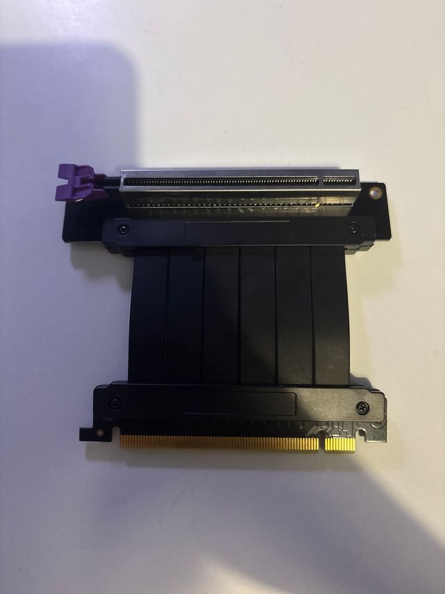 Adaptador PCIe para tarjeta gráfica, en perfecto estado, CoolerMaster. - Permite la instalación lateral de la GPU. - Diseño negro y compacto. .