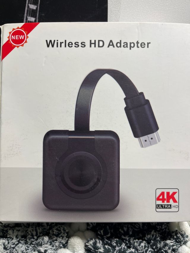 Detalles del productoAdaptador HD inalámbrico nuevo a estrenar. Es negro y compacto.