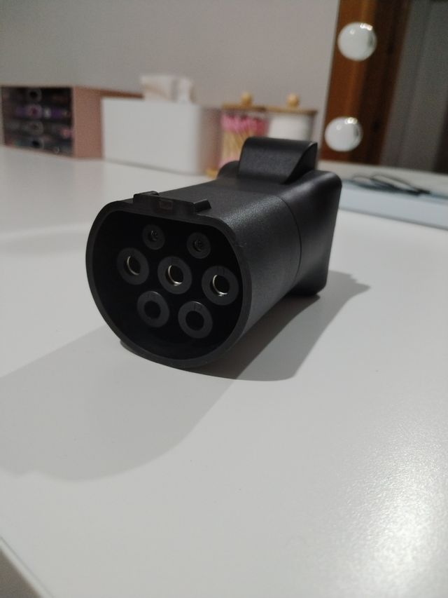 Adaptador hembra para coche eléctrico, en perfecto estado. - Permite la carga de vehículos eléctricos. - Color negro. - Material plástico resistente.