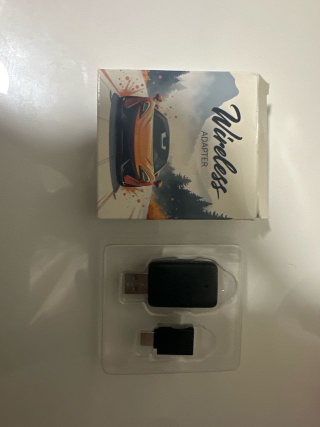 Adaptador inalámbrico para CarPlay. - Conexión USB. - Incluye adaptador USB-C.
