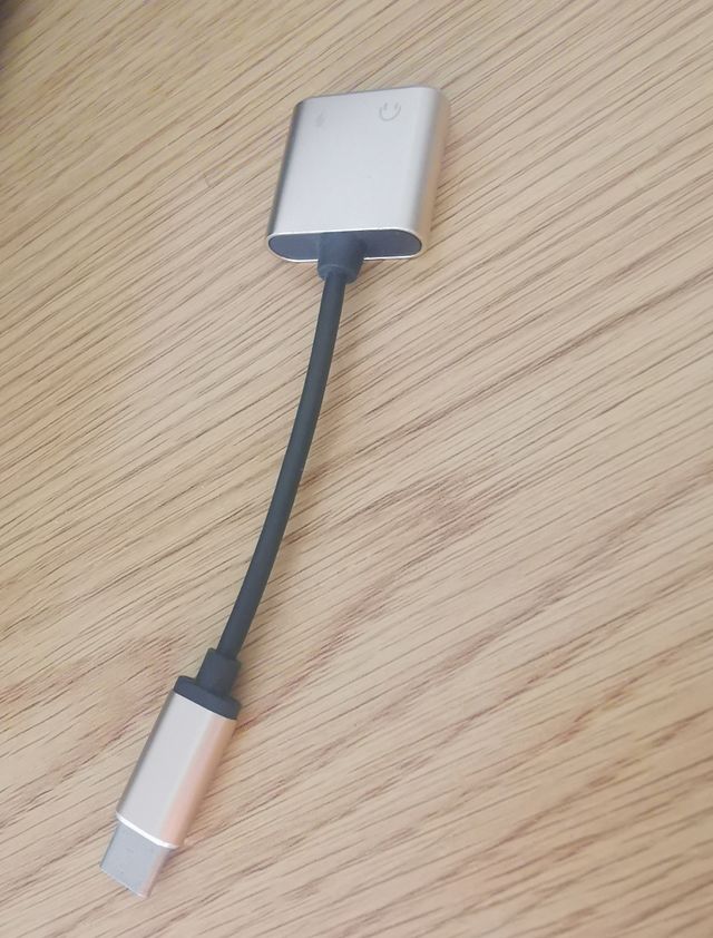 adaptado a la Huawei tipo C para poder conectar cargador y auricular al mismo tiempo mientras carga puede escuchar música o lo que quieras