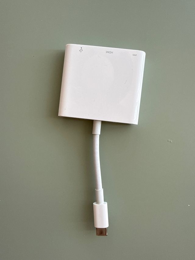 Detalles del productoAdaptador multipuerto de USB-C a AV Digital de Apple. Permite conectar dispositivos a pantallas HDMI y puertos USB.