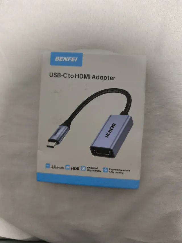 Detalles del productoAdaptador de USB-C a HDMI de la marca BENFEI. Permite conectar dispositivos con puerto USB-C a pantallas con entrada HDMI.