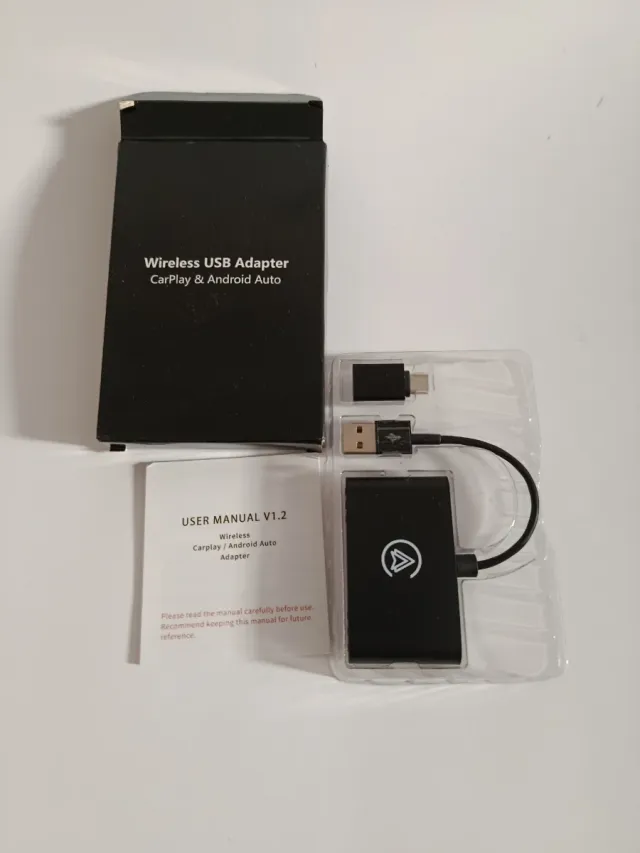 Detalles del productoAdaptador USB inalámbrico para CarPlay y Android Auto. Incluye manual de usuario.