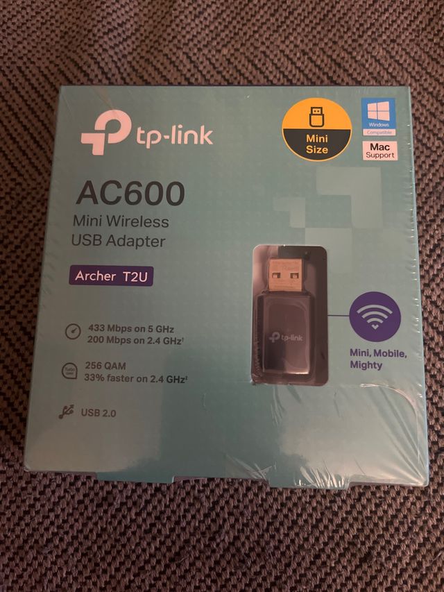 Detalles del productoAdaptador inalámbrico USB TP-Link Archer T2U AC600, completamente nuevo y sellado. Es de tamaño pequeño y funciona con Windows y Mac.