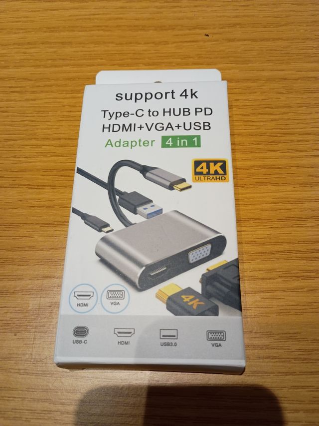 Detalles del productoAdaptador de USB C a HDMI, VGA, USB. Sirve para conectar móviles, tablet, portátiles, consolas a televisión con entrada HDMI o antiguos monitores con entrada VGA. Permite al mismo tiempo cargar el dispositivo alimentando con un cargador usbc y conectar también teclados o mouse, por ejemplo convierte móviles compatibles (casi todos los Samsung) en mini ordenadores de escritorio.