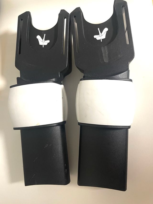 Detalles del productoAdaptadores para silla de coche Maxi-Cosi en cochecito Bugaboo. Permiten acoplar de forma segura la silla al chasis.