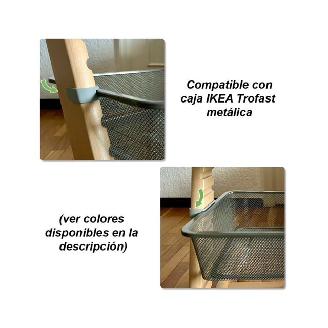 Detalles del productoUn juego de dos adaptadores (izquierdo y derecho) para la trona Stokke modelo Tripp Trapp para poder poner una bandeja / cajón de Ikea Trofast metálica de rejilla y utilizarla como almacenaje (para juguetes, puzzles, baberos,...)