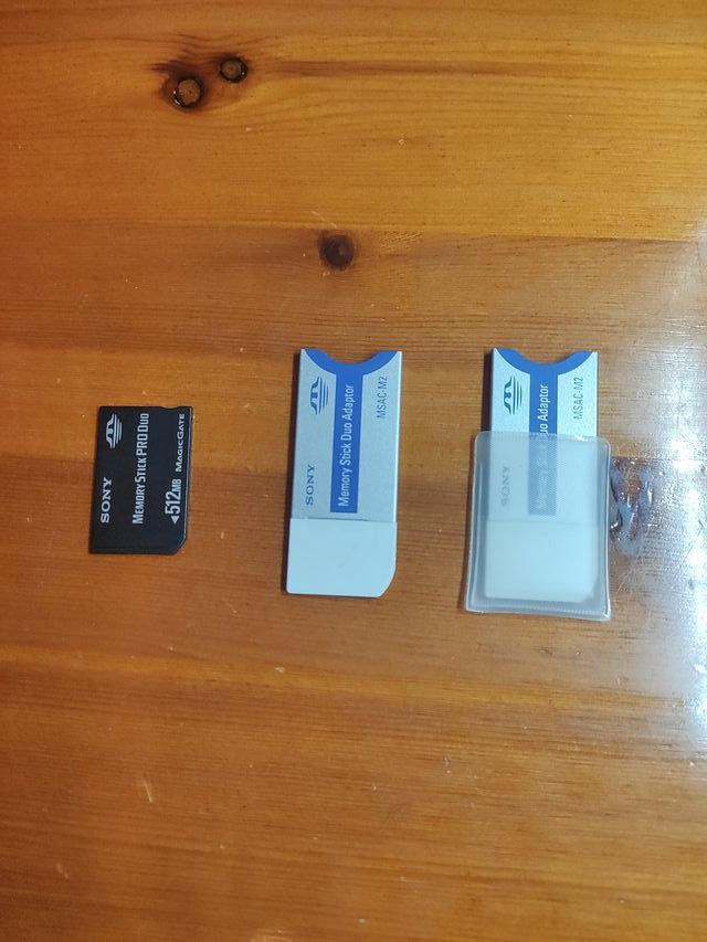 Dos adaptadores Memory Stick Duo y una Memoria de 512MB para PSP.