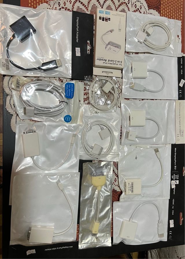 Detalles del productoLote de adaptadores y cables para dispositivos Apple antiguos.