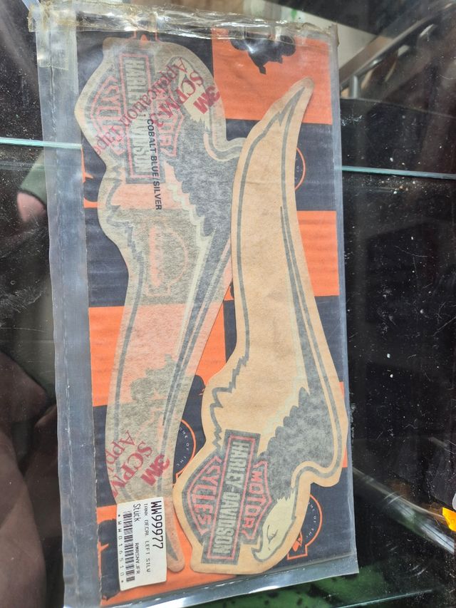 Detalles del productoPegatinas Harley Davidson para depósito de combustible. Son dos adhesivos nuevos, para el lado izquierdo del depósito. Están en su embalaje original.