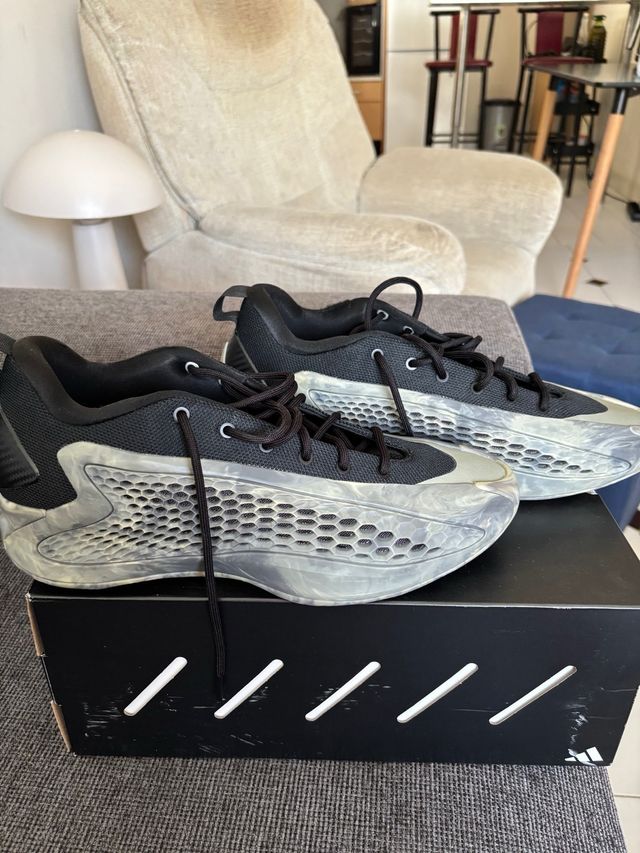 Zapatillas Adidas AE 1 Low en talla 45.5. - Diseño moderno y llamativo. - Combinación de colores negro y gris.