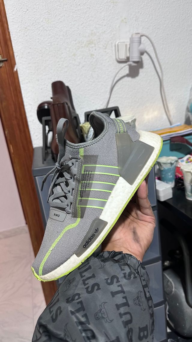 Adidas NMD gris con detalles verde neón