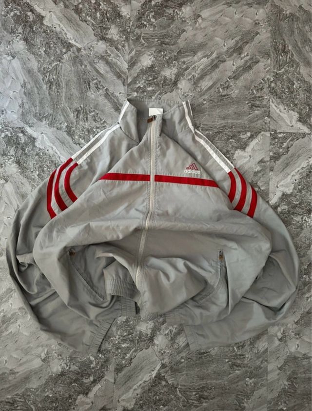 Adidas Track Jacket Gray and Red Vintage 90’s Y2K