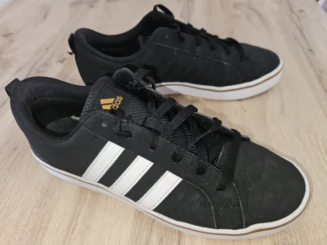 Zapatillas Adidas VS Space en color negro con detalles dorados.