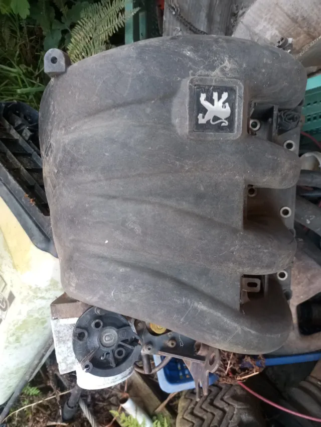 Admisión de aire para Peugeot 406 Coupé 2.0 16v Incluye la mariposa. - Pieza de plástico negro. - Logo de Peugeot visible.